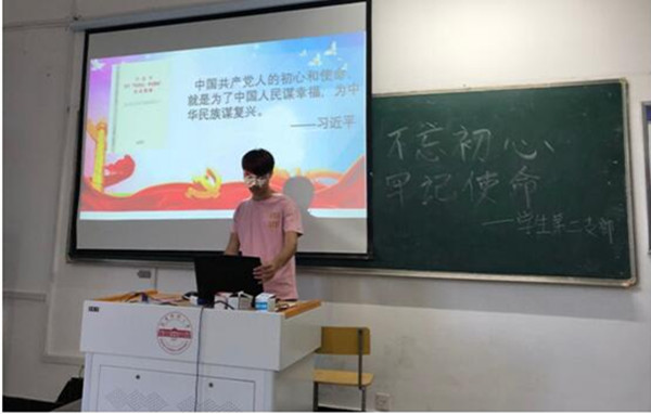 会议重温了习近平总书记在“不忘初心、牢记使命”主题教育工作会议上的重要讲话精神,通过学习大家进一步领悟了“用党的创新理论武装头脑,推动全党更加自觉地为实现新时代党的历史使命不懈奋斗”的内涵。陆佳对全体党员提出了具体要求,强调大家要增强政治理论的学习自觉,在主题教育中受洗礼,检视自己的不足及时改正加强能力与素质提升,尤其是要在学习生活中加强自律,积极发挥先锋模范作用,特别提醒大家要趁着青春大好年华用党的创新理论武装头脑,奋发有为。会上,与会人员还集体观看了“不忘初心,牢记使命”主题纪录片《初心永恒》。