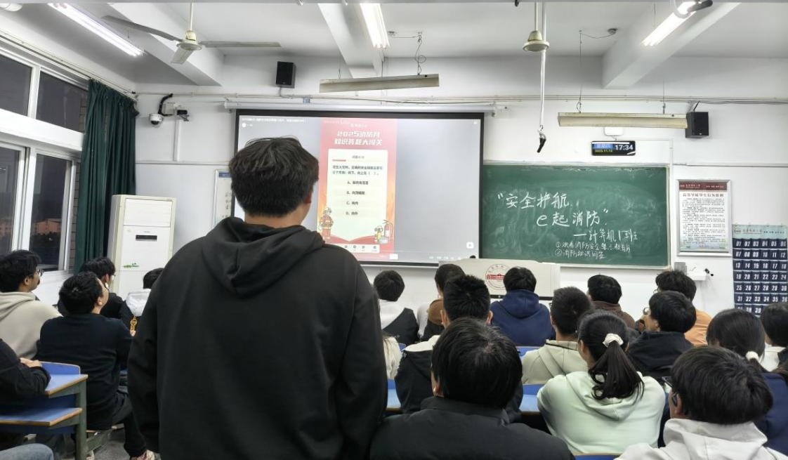 2025级计算机类8班同学认真学习了火灾的诱因、预防措施、初期火灾扑救方法以及火场逃生自救技巧,并就宿舍、实验室等校园重点区域的用电安全规范进行了深入讨论。