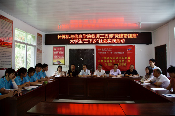 驱车近3小时的路程,“三下乡”重点团队一行来到了太湖县西冲村。村党支部书记朱先如携村两委热情接待了公司暑期“三下乡”社会实践活动小组一行,并同随行的领导、师生召开了座谈会。