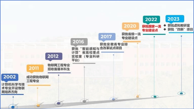 物联网工程专业为国家级一流专业建设点,先后获批安徽省专业综合改革试点项目、安徽省“四新”研究与改革实践项目、安徽省虚拟教研室、省级教学创新团队、校级课程思政教学团队等。