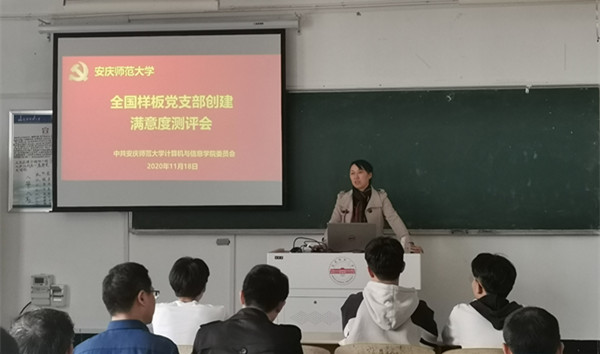 11月18日下午,公司党委在文渊楼202教室召开了全国样板党支部创建验收满意度测评会,公司各教研室、科室、年级等党内外师生代表和公司党委组织部相关同志共计三十余人参加了会议,对该院获批全国首批样板党支部的教师第三党支部的创建培育工作进行了测评,会议由公司党委书记陈银凤主持。