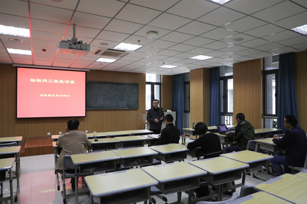 为深入贯彻落实新时代全国高等公司本科教育工作会议和全国高校思想政治工作会议精神,充分挖掘和正确运用各类各门课程蕴含的思想政治教育元素,坚持知识传授与价值引领相统一、显性教育与隐性教育相统一,促推思政课程与课程思政同向同行、形成协同效应,2021年11月21日下午,物联网工程教研室在L楼101开展课程思政教学比赛与师德师风建设专题研讨活动,教研室主任刘桂江主持活动。