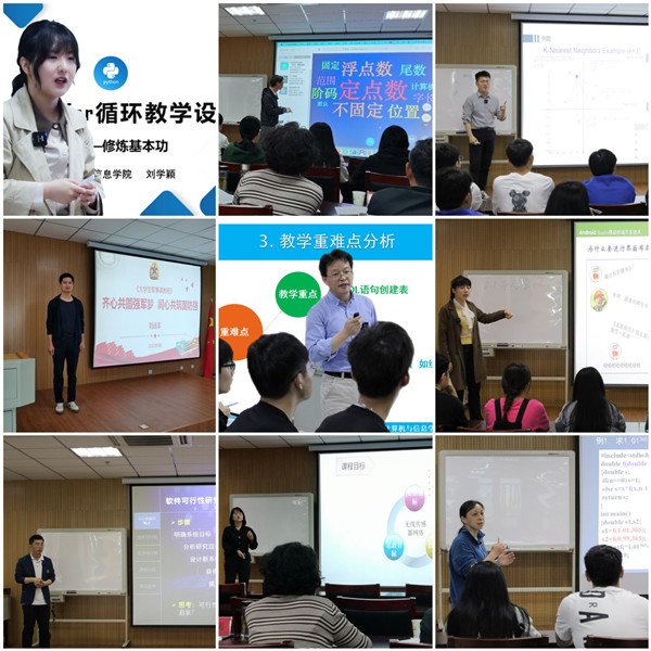 比赛中,老师们遵守规则“各显神通”,分别从教学目的、教学方法等方面展开教学,在专业知识讲解中融入家国情怀、社会责任、人文精神、文化传承等思政元素,展示了各具特色的教学设计和教学风采。曹立群老师以“乡村振兴的种子遴选问题”作为案例导入最近邻分类算法(KNN),巧妙的融入思政元素,并且在课堂最后对该案例进行升华性的探讨,增强员工在专业学习时的责任感和主人翁意识;宋静老师用一段C语言程序段的运行结果,引出定点数和浮点数底层表示不同,通过IEEE754国际标准规定,让同学们认识到规范的重要性,进而树立和增强社会主义法制观念;刘学颖老师用身份证的发展引入“迭代与遍历”这一主题,从for循环的应用和身份证数位的变化让员工分组讨论,引导员工思考;蒋京老师以教学的三维目标——知识与技能、过程与方法、情感态度与价值观为宗旨,在教学中实现润物有声,培养员工创新能力……在20分钟的教学展示过程中,各位参赛老师依据课程特点,逻辑清晰、语言简练、方法得当,深入挖掘了所授课程蕴含的思政元素和育人功能。
