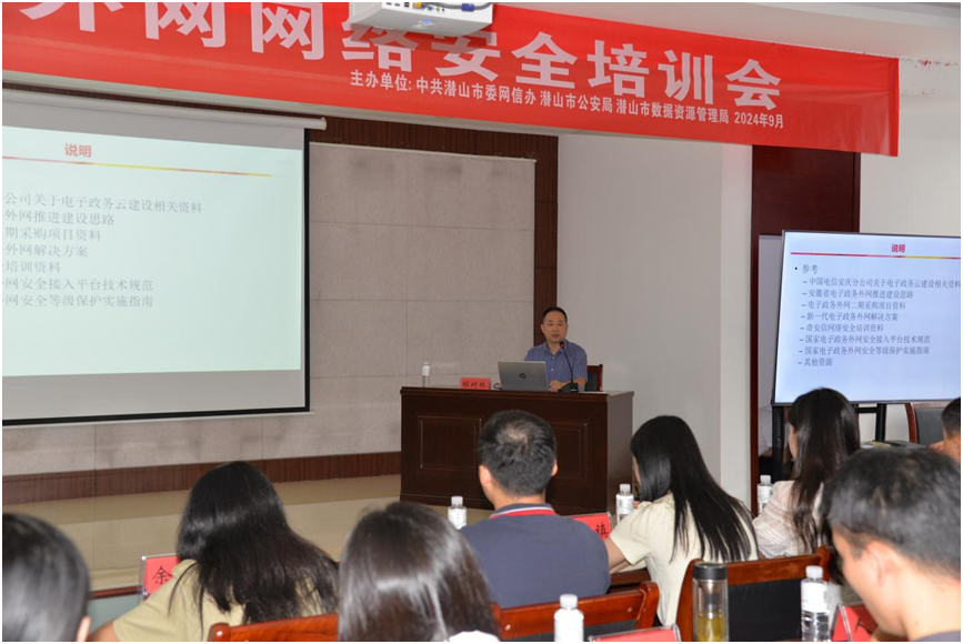 近日,bevictor伟德人工智能产业公司副经理程树林等一行应邀赴潜山市政府作电子政务外网及安全性等方面的专题报告。该市各市直业务部门、乡镇委办及主要业务单位负责人等共计60余人参会聆听了报告。