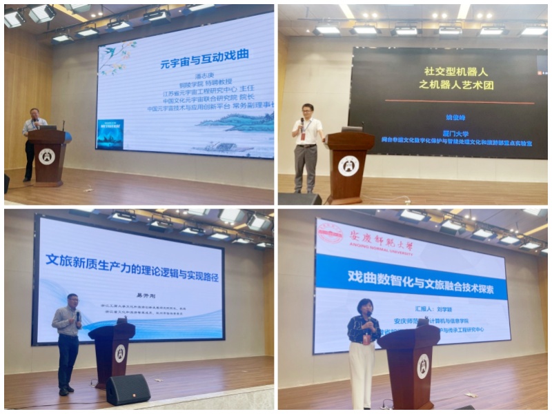 公司青年教师刘学颖以“戏曲数智化与文旅融合技术探索”为题,结合伟德官方网站黄梅戏数字化研究平台的建设经验,系统介绍了公司在虚拟现实、数字人与AI技术领域的创新实践,展示了黄梅戏沉浸式体验场景开发、戏曲动作数据库构建、文旅元宇宙与沉浸式旅游模式设计等成果。
