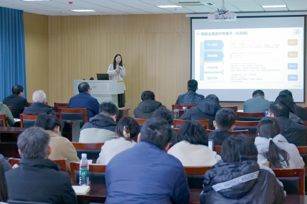 会议内容既有理论高度,又具实践指导性,为在场师生提供了清晰、系统的备赛指引。在随后的互动环节中,朱博士还结合具体获奖项目进行了案例剖析,与参会教师围绕项目培育、跨学科合作、技术创新与产业结合等话题展开了深入交流与问答。