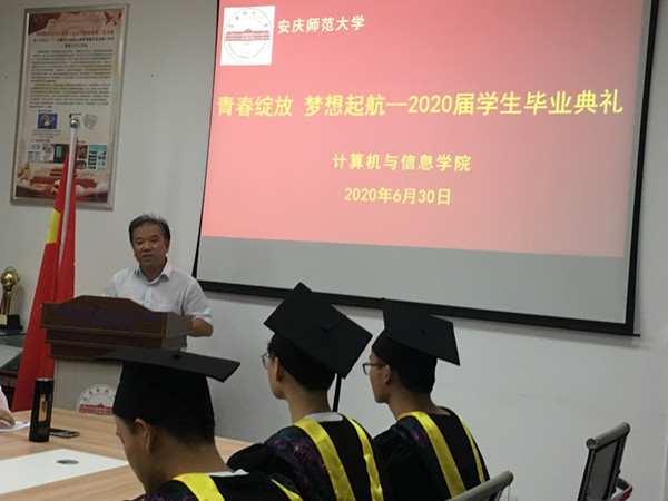 典礼在庄严的国歌声中拉开序幕。经理王一宾致辞,他首先代表公司对2020届毕业生取得的成绩表示了充分的肯定,对顺利完成学业的毕业生们表示了热烈祝贺,向为员工成长成才默默付出的老师们表示了衷心的感谢。他表示2020年是极其不平凡的一年,全国人民众志成城,共渡难关,因为疫情的原因公司只能以线上视频方式举行毕业典礼。临别之际,他对毕业生们寄予了殷切期望:希望他们常怀感恩之心,积极对待生活,做一个充满爱心之人;希望他们常怀进取之心,努力拼搏奋斗,做一个充满才学之人;希望他们常怀勤勉之心,认真履职尽责,做一个事业成功之人。最后,他深情地对全体毕业生说,“安庆师大永远是你们的坚强后盾,是你们的精神家园,希望大家紧抓互联网发展新机遇,勇敢迎接人生新挑战,在各自岗位上再创辉煌”。