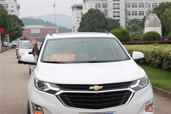 6月30日下午2点10分,在公司党委书记陈银凤亲自驾驶贴有“‘e’依惜别,‘e’心向党,逐梦前行!”标语 “首发车”的带领下,标识统一的车队行驶到龙山校区员工宿舍楼下。陈银凤拨通了计算机科学与技术专业2017工科(1)班毕业生杨庆的电话,仔细确认行李数量与车程安排,并且询问他休息的如何。其他老师也纷纷与各自接送的毕业生联系,忙着把他们的行李搬上自己的后备箱。
