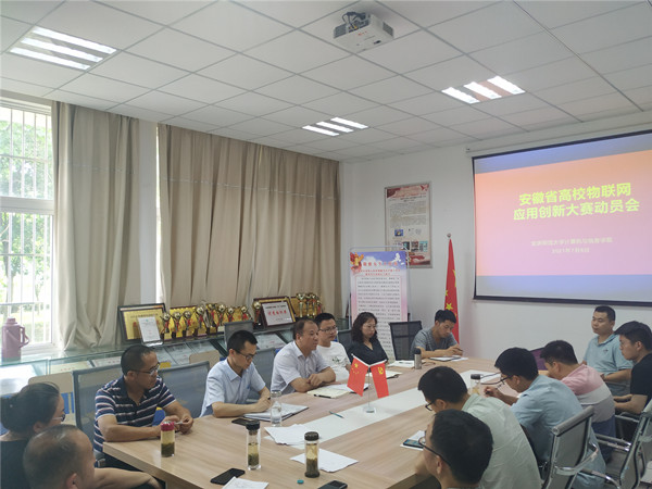 2021年7月8日,公司在稼先楼一楼108室召开安徽省高校物联网应用创新大赛动员会,经理王一宾出席会议,刘桂江、丁晓贵等11名指导教师参加会议,党委副书记江晋剑主持会议。