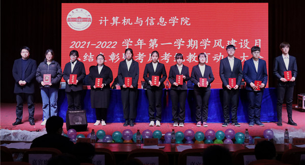 会上,辅导员李培森对2021年下半年学风建设月活动进行了总结,通报了2021-2022学年第一学期课堂教学巡查、文明寝室创建、大一晚自习出勤等情况,宣读了获得“优良学风班集体”的名单,刘远泽宣读了“五星级寝室”和“五星级示范寝室”名单。然后,经理王一宾为优良学风班集体颁发了奖状,副经理吴健为文明寝室颁发了奖状。