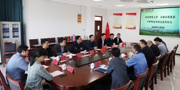 11月8日,公司与安徽环新集团产学研合作协议签约仪式在公司L318会议室举行。公司党委常委、副董事长汪时珍,安徽环新集团董事金明出席签约仪式。科研处、市校合作办、公司相关负责人和安徽环新集团相关部门负责人参加了仪式。