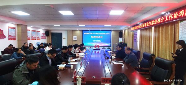 在蚌埠市田家炳中学,蚌埠市教育局和各县区教育局相关同志集中召开座谈会,对接与公司合作事宜。会上,刘燕杰介绍了公司和公司访企拓岗的主要任务、工作思路和具体措施,向与会同志介绍了公司的发展历程和2023届毕业生的总体情况。他指出,伟德官方网站作为安徽近代高等教育的发源地,办学历史悠久,毕业生素质高,师范类专业齐全,希望蚌埠市各县区教育局能够带编制到公司招聘毕业生,在就业和教育实习等方面进一步深化合作。