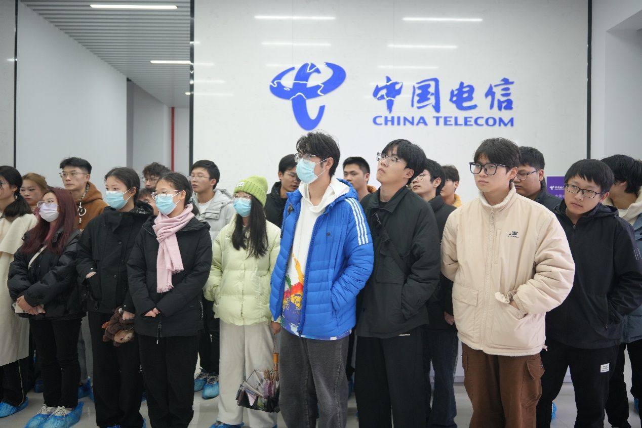 在安庆电信数字运营中心,同学们先后现场参观了城市大脑运营中心、安庆云谷、5G创新应用实验室等,了解了工业大脑数据机房等软件硬件设施建设情况,中心工作人员向同学们现场展示了数据归集、共享应用等情况及主题式智慧应用场景,解读了城市大脑运行情况,结合计算机网络有关课程知识点讲解如何利用大数据、人工智能等技术,为政府、企业和社会各界提供智能化应用,强调了计算机网络在数字化信息化建设中是不可或缺的支撑,实践学习现场,在老师们的指导下同学们还对部分智慧应用场景进行了现场体验。